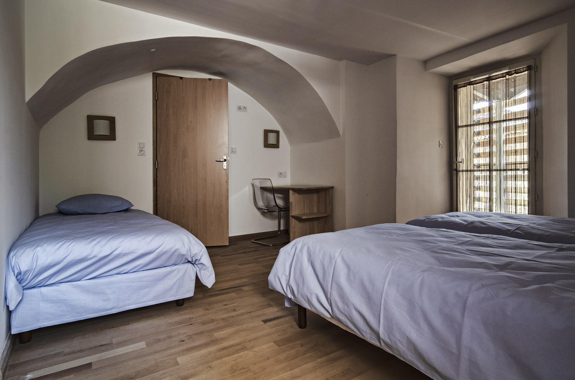 Chaque chambre compte 3 lits largeur 90. L’une dispose d’une salle de bain avec baignoire, l’autre une salle de bain avec douche à l’italienne – chaque salle de bains possède également des toilettes. Les deux chambres ont un téléviseur écran plat avec réception TNT, une connexion Internet par câble.