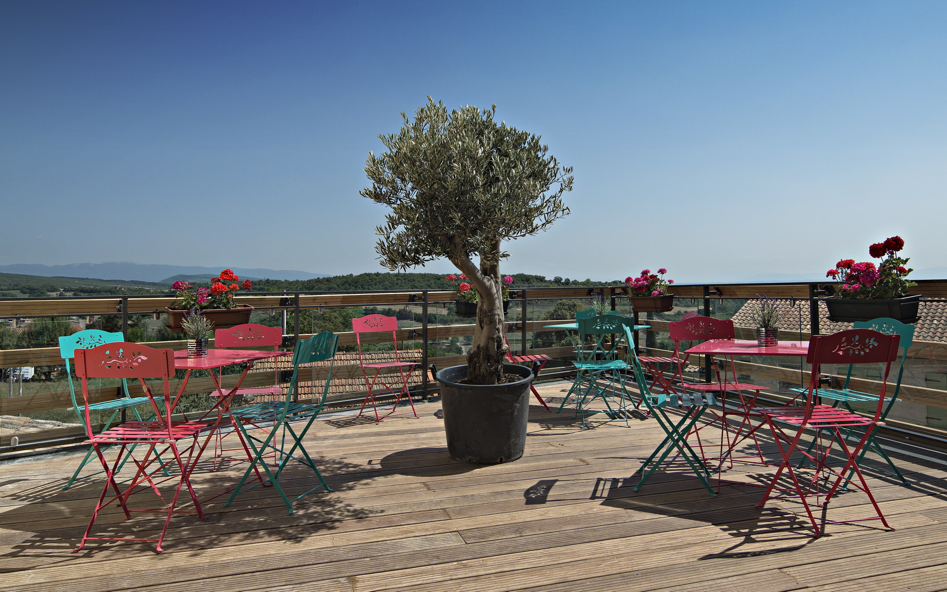 L’hôtel Galilée met à votre disposition une salle de petit-déjeuner avec une grande terrasse offrant une vue imprenable sur l’observatoire et le centre astronomique de Provence, ainsi que sur la montagne de Lure. En extérieur ou à l’intérieur, les repas sont servis sur des tables individuelles.
